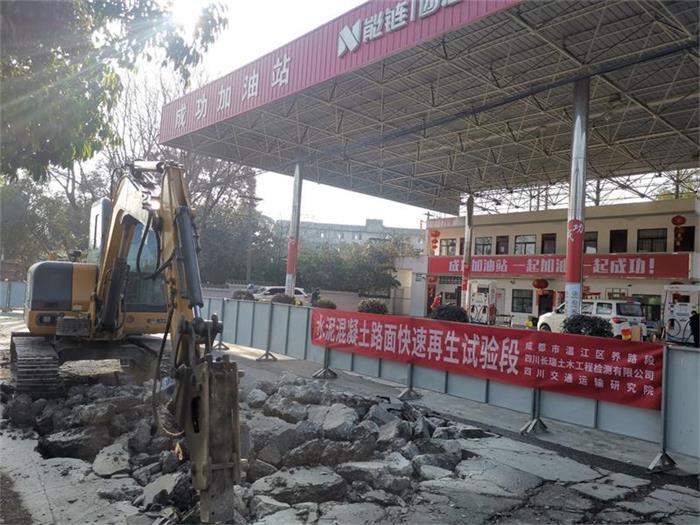 2023年2月14日上午,四川長(zhǎng)瑞、成都市溫江區(qū)養(yǎng)路段、四川交通運(yùn)輸研究院、三方一同合作,開展成都市溫江區(qū)成名高速南輔道(成功加油站前)水泥混凝土路面再生試驗(yàn)段。